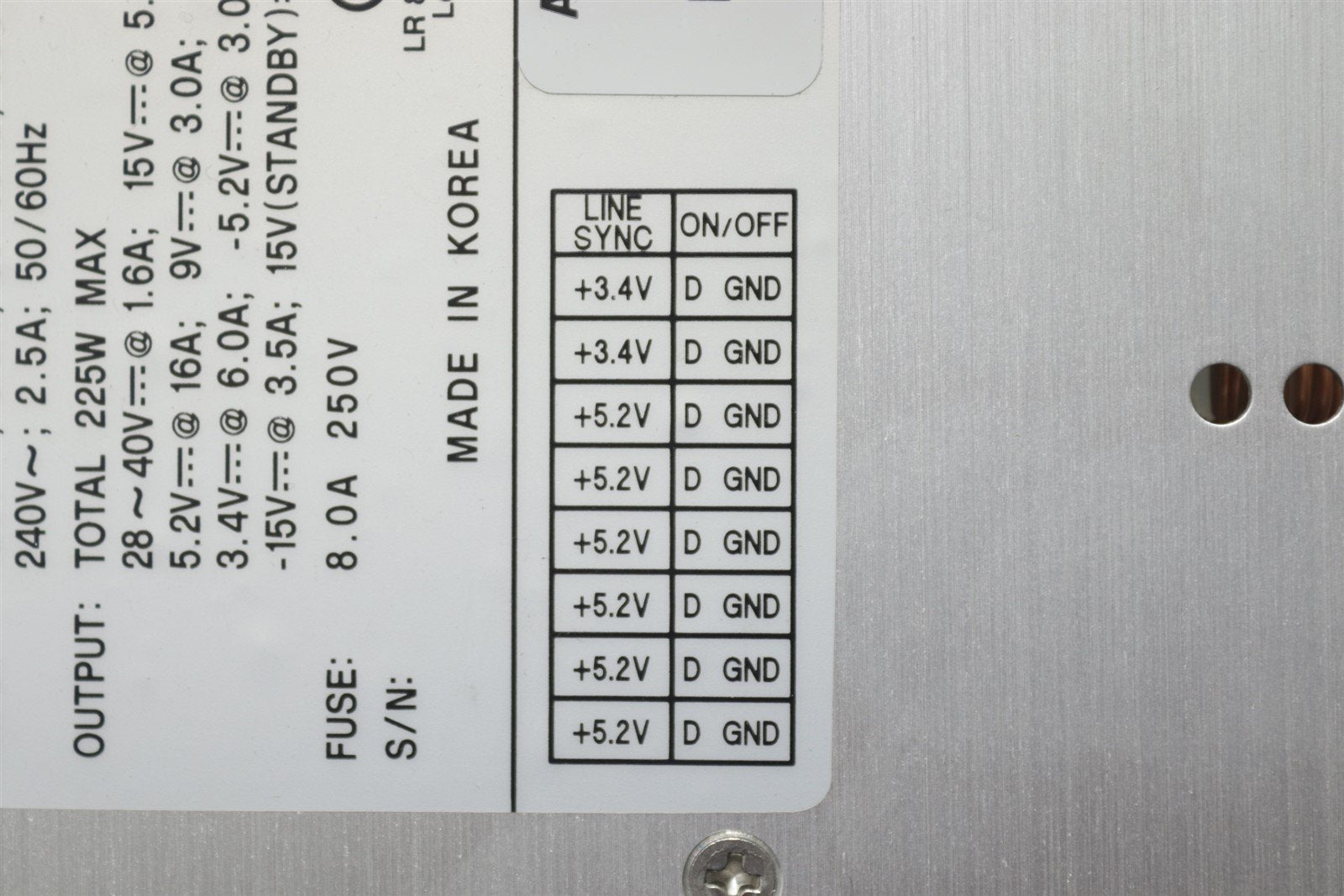 Description Power Supply 225W max