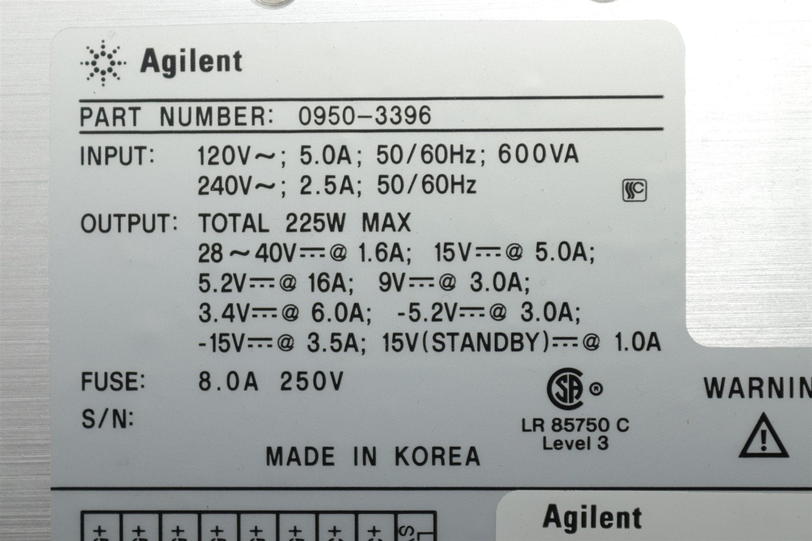 Agilent 0950-3396 Power Supply 225W 28~40V-1.6A 15V-5A 5.2V-16A 9V-3A 3.4V-6A