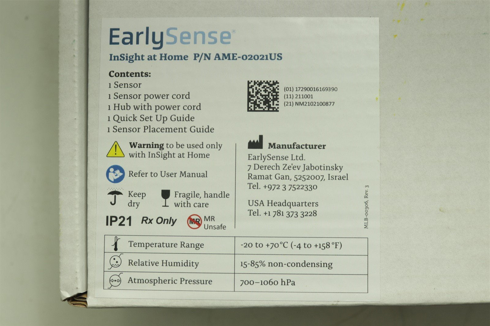 EarlySense InSight at Home AME-02021US