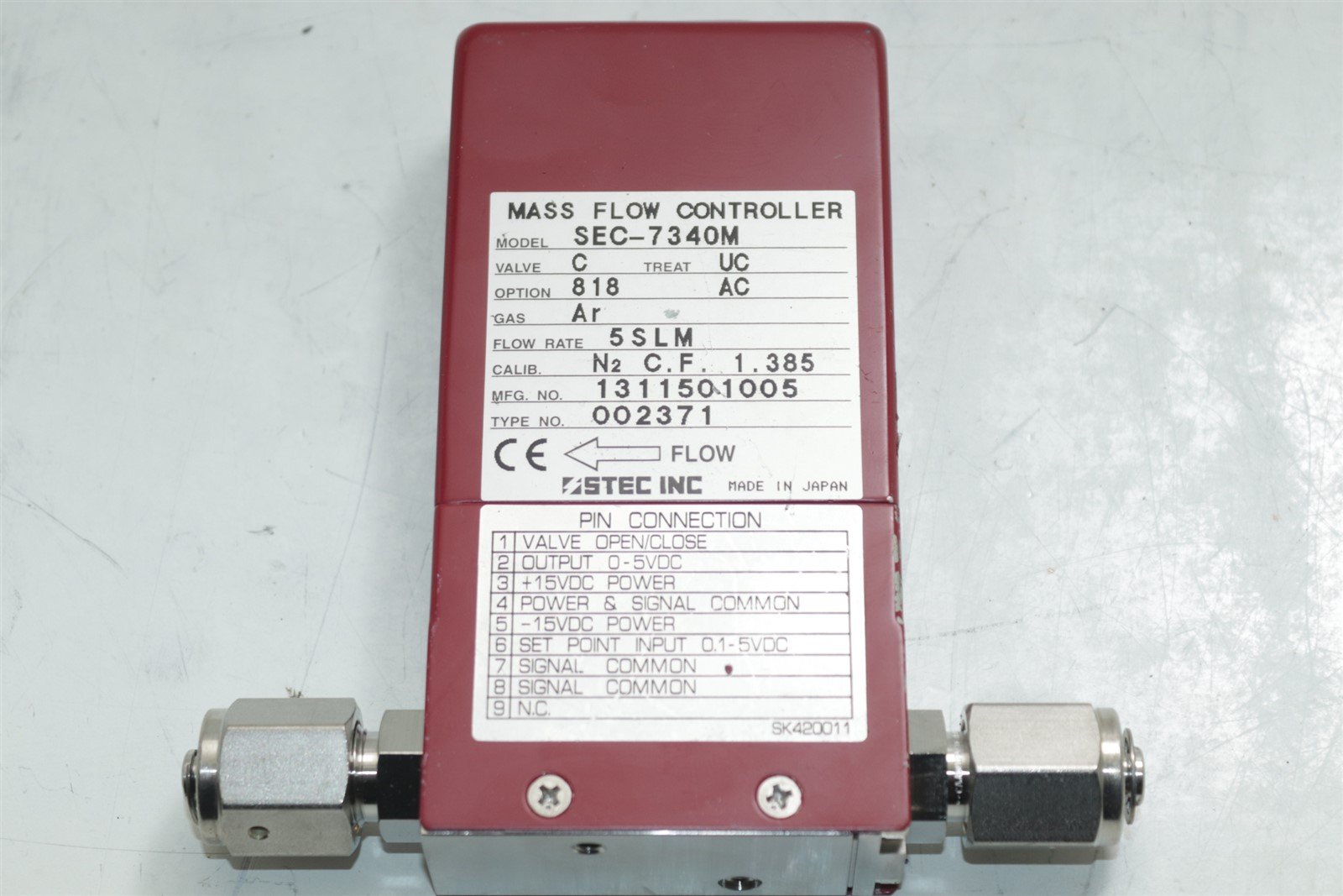 STEC SEC-7340M MFC Mass Flow Controller OPT 818 5SLM